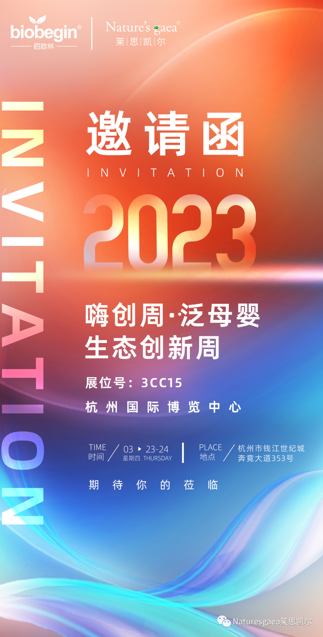 2023年3月23-24日,2023嗨創周即將在杭州國際博覽中心拉開帷幕。作為嬰童營養品行業優質品牌,屆時,萊思凱爾將攜品牌益生菌系列和酶系列產品在3CC15展位亮相。誠邀您的蒞臨,期待在展臺現場與您相會!