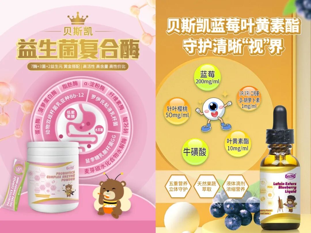 依托敏銳的市場洞察,貝斯凱產(chǎn)品矩陣不斷升級調(diào)整,拓展各類劑型產(chǎn)品,搭建了完善的產(chǎn)品線,涵蓋基礎營養(yǎng)、腸道營養(yǎng)、眼腦營養(yǎng)、免疫營養(yǎng)和成人營養(yǎng)五大板塊,全方位鏈接消費者需求,以“實力+顏值”牢牢抓住消費者的心。